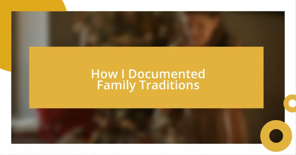 Choosing the right documentation method for family traditions can be as personal as the traditions themselves. I vividly remember one summer afternoon, rummaging through a box of old photos with my mother. Each snapshot sparked a wave of nostalgia, illuminating rich stories I hadn’t heard before. This experience highlighted for me that sometimes, visual documentation—like photo albums or scrapbooks—can evoke emotions and memories that words alone might miss.
