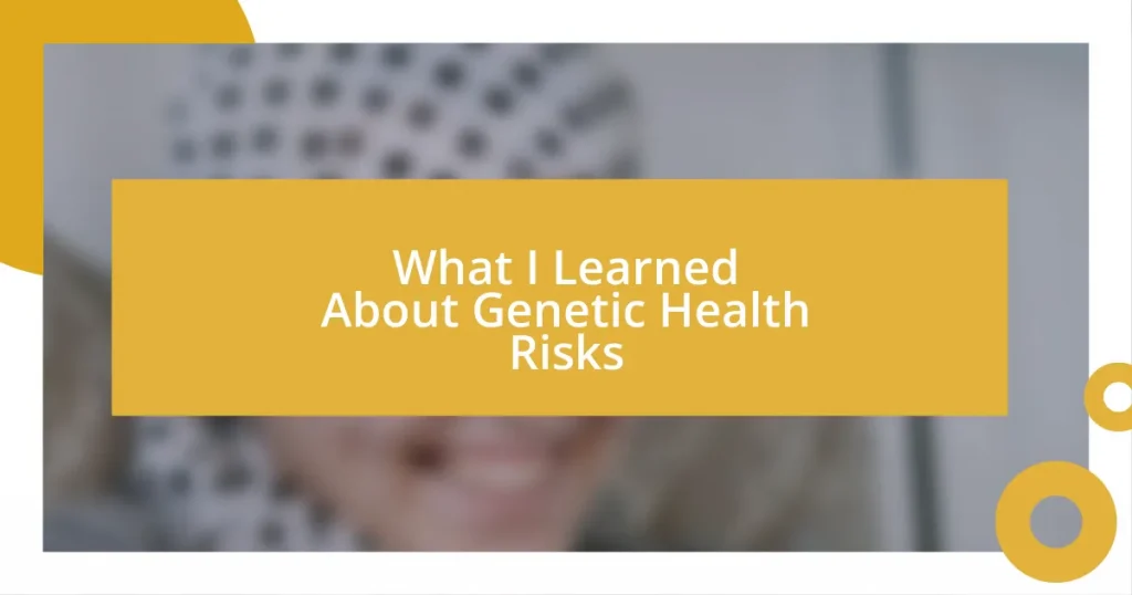 I also found support groups invaluable. Sharing my genetic findings with others on similar health journeys helped cultivate a community of knowledge. I recall a gathering where others shared their experiences with genetic counseling. Hearing their stories made me realize the power of shared insights—sometimes, the best strategies come not just from professionals, but from those navigating the same waters. It left me pondering: How can we best harness these collective experiences to improve our management of genetic health risks? It’s a thought that often lingers in my mind.