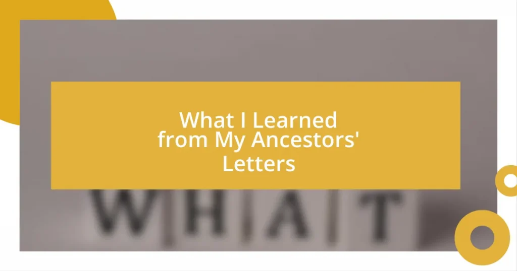 Ancestors’ letters are a fascinating glimpse into the past, often filled with personal stories, advice, and emotions that capture the essence of their time. I still vividly remember opening a worn envelope from my great-grandmother, each yellowed page whispering secrets that made me feel more connected to her life struggles and victories. Have you ever come across a letter that made you feel as if you were peering directly into someone else’s heart?