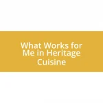 - Culinary Experiences: I once enjoyed a meal made from traditional recipes, which illuminated the regional flavors and cultural stories behind the food.